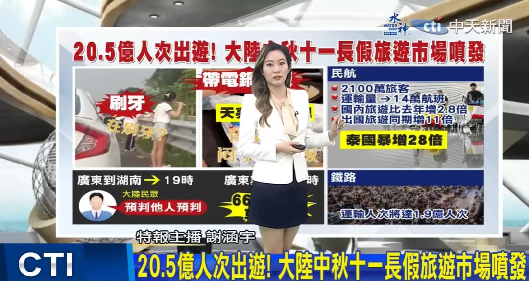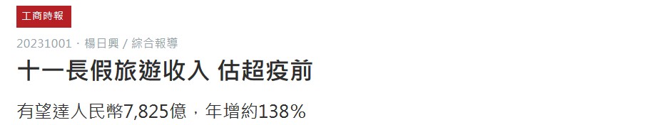 還有島內媒體注意到,受益於亞運會所帶來的經濟效益和社會效益,杭州在“十一”期間整體訂單預訂量同比增長542%,酒店預訂量同比增長超8倍。 大陸“雙節”火熱的旅遊消費市場令島內業者艷羨不已,不少網友在相關報道評論區留言直呼“看得到吃不到!”