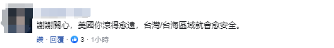 “謝謝關心,美國你滾得愈遠,台灣/台海區域就會愈安全。”