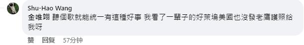 結果很快被其他網友回懟:“聽個歌就能‘統一’有這種好事,我看了一輩子的好萊塢美國也沒發老鷹護照給我呀!”