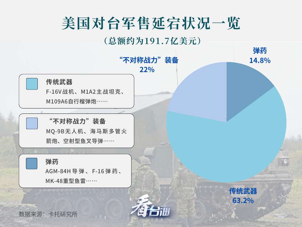 圖源:看台海 據“看台海”報道,基於美國國防部國防安全合作局(DSCA)與斯德哥爾摩國際和平研究所(SIPRI)的資料,卡托研究所發現,美方積欠台灣的軍備總數高達191.7億美元(約合6172億元新台幣)。 卡托研究所將美方積欠台灣軍備,分為傳統武器、“不對稱戰力”裝備、彈藥三大類。其中,積欠傳統武器121.1億美元,以63.2%的整體積欠比例最高;“不對稱戰力”裝備42億美元,占22%;彈藥為28.4億美元,占比14.8%。 “傳統裝備的典型例子是傳統戰機、戰車和水面戰艦。”卡托研究所認為,傳統裝備適於應對所謂“脅迫性軍事活動”,較“不對稱戰力”裝備能力更強,但成本往往更加高昂,操作人員需要更多訓練。在高強度戰爭中,也更容易成為敵方優先攻擊的目標。 其中,僅F-16V戰機一項就有80億美元,占整體積欠的41.7%;M1A2主戰坦克20億美元,占整體積欠10.4%。以上兩項武器所占金額就超過積欠一半。 其它遲交的傳統武器還包括:M109A6自行榴彈炮(3.9%)、F-16型戰機紅外線搜索追蹤系統(2.6%)、“密集陣”MK15型近程武器系統(2.2%)、MS-110偵察吊艙(1.9%)、供台軍“基隆級”驅逐艦使用的AN/SLQ-32電子戰設備(0.4%)。 眾所周知,以F-16V戰機為主的傳統武器,已經成為了美國對台軍售騙錢的“搖錢樹”,然而這個大“錢坑”,美國願意挖,民進黨當局願意跳。難怪有台灣網友不滿,諷刺說:“詐騙集團遇到詐騙集團”。 卡托研究所將“不對稱戰力”裝備,定義為“機動性強、成本相對低、能够抵銷中國大陸軍事優勢的武器”。 在美方積欠的42.21億美元“不對稱戰力”裝備中,以23.7億美元的“魚叉”岸防巡航導彈系統最高。其餘還有:MQ-9B無人機(3.1%)、海馬斯多管火箭炮(2.3%)、空射型魚叉導彈(1.9%)、野戰資訊通信系統(1.5%)、火山佈雷系統(0.9%)。 對於美國開出的這些“不對稱戰力”裝備,民進黨當局選擇照單全收。對此,有專家指出,所謂的不對稱戰略,只是美國避免在台灣問題上和中國大陸攤牌的一種政治幌子。同時,美國念的是生意經,通過創新概念,把一些并不具備真正不對稱優勢、淘汰下來的老舊武器裝備賣給台灣當局,這可以被稱為一筆忽悠出來的買賣。更有台灣網友認為這是“無底洞”;“買這些根本沒用,浪費納稅人血汗錢。” 即使不包括其它武器的附隨彈藥(如M1A2T訂單所包括的坦克彈藥),卡托研究所所統計的各項積欠彈藥也高達28.35億美元。其中,以10.08億美元的AGM-84H導彈最高,占整體積欠的5.3%。 其它遭到美方積欠的彈藥還包括:F-16彈藥(3.2%)、MK-48重型魚雷(2.2%)、30公厘口徑彈藥(1.7%)、AGM-154C聯合距外精準彈藥(1%)、輕型魚雷與轉換套件(0.9%)、AIM-9X空對空導彈(0.4%)。 令人痛心的是,上述這些少則幾千萬、多則數十億美元的積欠軍售,不過是美國歷年對台軍售的冰山一角。 在“以武謀獨”的民進黨當局的配合下,美國對台軍售已到了予以予求的地步,以什麼價格、賣什麼武器、何時賣、賣多少,全都由美國說了算,民進黨當局對此只能“感謝”,不敢稍有微詞。 更荒唐的是,台媒曾披露,美國甚至還替台當局開通了“代下單業務”,台軍竟然通過新聞才得知己方向美國訂購了無人機。 可以說,美國不斷攫取島內財富,不惜耗費台灣民眾的生命,也要把台灣島打造成一頭炮口指向中國大陸的“豪豬”。 民進黨當局與外部勢力勾連,所作所為只會讓台灣更加兵凶戰危,只會讓台灣同胞更加憂心忡忡。對此,大陸國防部發言人曾直言,“以台制華”注定失敗,“以武謀獨”死路一條。 【編輯:張依珊】