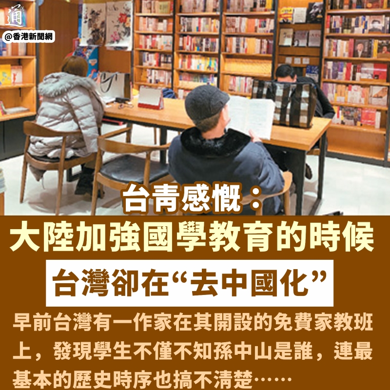 香港新聞網11月9日電 一邊是加強國學教育,讓民眾博古通今,一邊是為政治私利篡改教材,不斷“去中國化”,兩岸對待傳統文化的差距讓一位台灣青年無奈感慨:台灣真的完蛋了! 近日,一位化名“Ice Bear”的台灣網友參與了台灣網紅“歷史哥HistoryBro”的連線,節目中,他分享了自己逛深圳書店的經歷,稱大陸崛起的過程中越來越注重文化軟實力的提升,其中對傳統典籍的推廣教育是不可缺失的一環。 他說,在台灣民進黨當局為推所謂“教育‘台獨’”,大肆篡改教材,扭曲學生史觀的時候,深圳書店內隨處可見《資治通鑒》《古文觀止》等典籍,大陸教科書更是大篇幅講解古文史學著作。在啟蒙階段,學生們會誦讀《三百千千》(三字經、百家姓、千字文、千家詩)《幼學瓊林》等,高年級的學生會逐步接觸《古文觀止》《綱鑒易知錄》《經史百家雜鈔》…… “Ice Bear”恨鐵不成鋼地表示:“大陸越來越注重古文以及傳統文化的教育,連帶書店也會上架很多國學書籍,而台灣卻在任意刪減……兩岸差距真的很大!” 他還提到,美國金融大亨吉姆·羅傑斯的兩個女兒能說一口流利的中文,還曾上大陸電視節目朗誦古文詩詞。吉姆·羅傑斯本人也曾表示:“我這輩子最好的投資就是讓女兒學中文。 ” “連吉姆羅傑斯這麼一個有名的人都會讓女兒學中文,甚至學習古文,了解中國傳統文化,台當局到底在做什麼?”“Ice Bear”反問道。