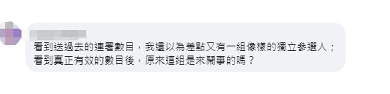 “看到送過去的聯署數目,我還以為差點又有一組像樣的獨立參選人;看到真正有效的數目後,原來這組是來鬧事的嗎?”↓