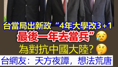 兵役成“票房毒藥”?民進黨討好大學生的“妙計”貼了“冷屁股”香港新聞網11月21日電 今年6月,為了討好將要服一年兵役的大學生群體,民進黨當局教育部門聯合防務部門推出“3+1方案”,即大學生可將原本4年修完的課程縮短至3年,剩下一年去當兵。最新數據顯示,該方案在島內各高校反響冷淡,全台僅46名學生提出申請。