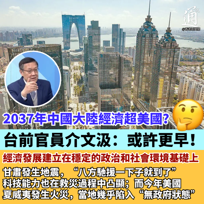 (香港新聞網製圖) 介文汲指出,CEBR沒有明確說明最大經濟體的具體內涵,猜測其並未按照慣例直接用GDP評估經濟,只是將GDP作為指標之一。而根據大部分國際組織和媒體的預測,最遲2030年中國大陸的GDP就會超越美國。 評估經濟的指標設置不同,結果自然會有差距。介文汲舉例,包括交通、金融、電子通信等在內的服務業可作為指標之一,科技創新能力亦可納入考量範圍。 他提到,就貿易指標看,大陸已經是貿易總量最大的國家;就生產總量指標看,大陸亦是全方位、全產業鏈和全品項發展的最大製造國。“如果著重看貿易和生產能力的話,那大陸已經是最大經濟體了。”至於科技創新能力方面,大陸已經和美國是“平手”,惟金融發展略落後於美國。 “綜合來看,現在大陸與美國已經是平起平坐,”介文汲形容,“美國要用很多力量來制衡大陸的時候,就發現力不從心。” 介文汲援引《亞洲周刊》此前的評論指出,大陸擺脫中等收入陷阱的關鍵是創新力。他提到,美國迪士尼通過文化創新在全球收穫了巨大盈利,硅谷通過新產業改變了世界,“美國是有創新,可現在大陸的創新也不差”。介文汲指,大陸有華為這樣的頂尖科技公司,電子通信等產業發展前景並不會比硅谷差,同時大陸的新能源車“已經跑到了前面”,形容如今大陸和美國“各有擅長,已經不再是美國獨佔鰲頭(的局面)”。 介文汲強調,歸根結底,經濟發展建立在穩定的政治和社會環境基礎上,“大陸現在的政治和社會穩定程度,相較於美國是絕對佔優勢的”。他提到,近期甘肅發生地震,“八方馳援一下子就到了”,且科技能力也在救災過程中凸顯,例如運20、無人機以及華為衛星電話等都發揮了重要作用。反觀今年美國夏威夷發生火災,當地幾乎陷入“無政府狀態”,與大陸“形成強烈對比”。 【編輯:王瑶】