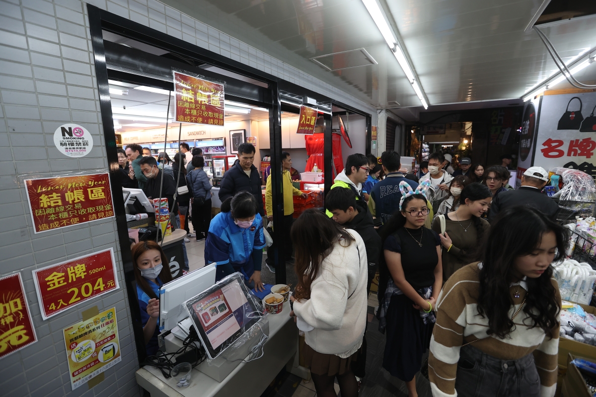 跨年晚會周邊便利商店為因應大量人潮將玻璃大門拆除並在外設置臨時結帳區