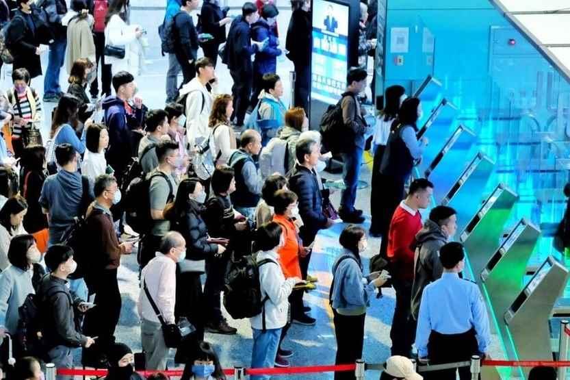 桃園機場8日湧現人潮。圖源:台灣“中央社” 機場從當天上午7時湧現人潮,航班運量整點人數預報表顯示,當天出入境及轉機旅客達到13.7萬人次。桃園機場稱,除小年夜外,除夕到初二以及初四,都是出入境高峰。 多數旅客表示,有刻意提早出門,部分來自高雄的旅客,為準時到櫃檯辦理手續,更是前1天就入住機場附近酒店。 桃園機場春節疏運從7日起至15日共9天,預估總運量上看116萬人次,平均日均量約12.8萬人次,恢復至新冠肺炎疫情前2019年春節日均量的90%。(完) 【編輯:凌玉辉】