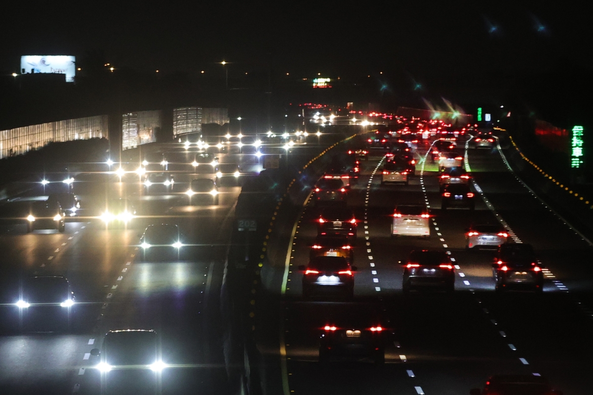 香港中通社圖片 台灣小年夜車潮湧現,8日晚間,許多台灣民眾趁著除夕夜前夕返鄉,各段南北方向高速公路出現返鄉車潮,車潮可能持續至9日除夕中午。(香港新聞網2月9日綜合) 【編輯:鄭竣凱】