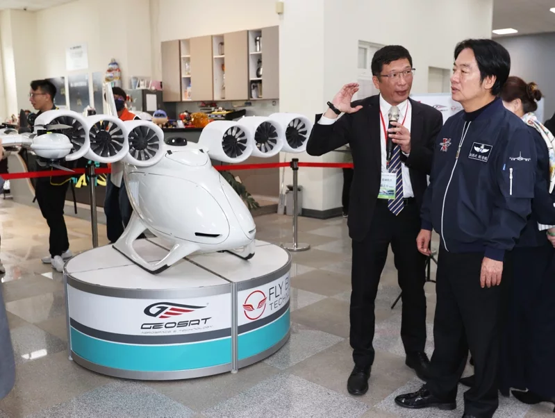 賴清德22日上午參觀無人機研發中心。 (圖源:台灣《聯合報》) 廠商介紹稱,該款無人機能够垂直起降,搭載輕型多功能導彈,執行空中無人作戰,無人機機身目前都是“台灣製造”,但8個協助平衡的碳纖維螺旋槳,在測試階段先對外購買驅動馬達使用。但目前已可自行生產,之後會將所有螺旋槳驅動馬達更換為“台灣製造”。 而對於產品上印有“MADE IN CHINA”字樣,業者稱,現場展出的是與土耳其、英國合作製造的無人機,並非公司承製台防務部門“軍用商規無人機”計劃的產品。這款無人機由土耳其研發,初期的確使用大陸製零件,例如直驅馬達、螺旋槳與電池等,未來會進行更換。