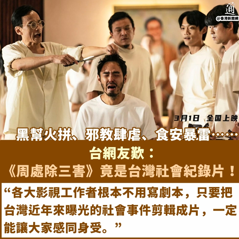 香港新聞網3月27日電 在大陸爆火的台灣電影《周處除三害》竟是一部“紀錄片”? 近期,一部名為《周處除三害》的台灣電影在大陸爆火。 截至3月24日,該電影票房已破6億人民幣,豆瓣評分高達8.1,妥妥的黑馬電影。 電影講述了一名在台灣排行第三惡的通緝犯陳桂林(台灣演員阮經天飾),在得知自己將不久於人世後,為了在歷史留名,先後鏟除了通緝榜排行前兩名的“香港仔”和“牛頭”,其中“牛頭”還搖身一變成為假靈修、真斂財邪教團體的首領。正是靠著陳桂林的追蹤和揭露,所有參與斂財的邪教成員才得以曝光和懲處。而陳桂林最後也自首接受死刑,成為一名為民除三害的“現代周處”。 2023年該片在台灣上映時,票房不到5000萬元新台幣(約1000萬人民幣),卻能在大陸引發觀影浪潮,究竟為何? 一位台灣網友在參與台網紅“歷史哥HistoryBro”的視頻節目時直言,其實《周處除三害》是部反映台灣社會現狀的“紀錄片”! 這位網友舉例道,電影中“牛頭”為了讓陳桂林入教,設計他“吐黑水”,聲稱陳體內有不乾淨的東西,自己可以幫他淨化。在這位網友看來,“吐黑水”隱喻的是台灣社會近幾年頻頻暴雷的食品安全問題。無論是本地豬爆出含有瘦肉精,還是辣椒粉含致癌物蘇丹紅,在民進黨當局的“執政”下,台灣民眾餐桌上的安全早已不復存在。