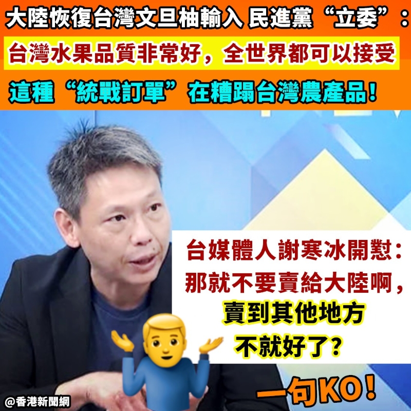 民進黨“立委”稱大陸恢復台文旦柚輸入是“統戰”,台媒體人一句KO!分享到: