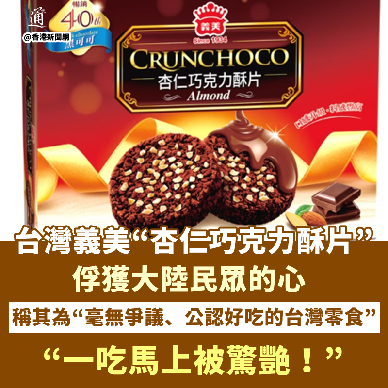 香港新聞網5月27日電 提起台灣零食你會想到什麼?鳳梨酥、浪味仙還是珍珠奶茶?有這麼一款零食,不僅風靡台灣逾四十年,還意外俘獲大陸民眾的心…… 近期,有大陸網友在社交平台小紅書發帖分享,稱最近愛上台灣義美食品出產的“杏仁巧克力酥片”,形容這款零食為燕麥酥口感,味道類似趣多多巧克力曲奇餅乾。 帖文一出,意外引發兩岸網友爭相討論。有大陸網友表示,該款零食味道很讚,但目前只能網上代購,費用也超級高,若有機會到台灣會大量掃貨。 也有一些台灣網友留言大讚博主識貨,指這款餅乾“比大家都老,它是1979年誕生的,足足賣了44年啊,可見它多受台灣人喜愛。” “我從小吃到大!捏碎慢慢吃或直接咬。”還有台灣網友分享自己的獨家吃法,稱“可以泡熱牛奶,我沒吃早餐都會吃這個。”