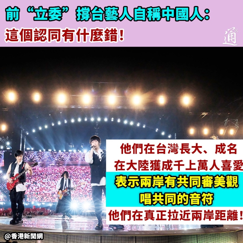 香港新聞網5月28日電 台灣樂團五月天主唱阿信日前在演唱會時提到“我們中國人”,台灣歌手蔡依林在江西南昌開唱,亦向台下歌迷大喊“我們中國南昌最熱情了”。相關話題掀起熱議,卻遭部分台灣網友“出征”。對此,台前“立委” 鄭麗文認為,這些說出“我是中國人”的台灣藝人反而是成熟的,他們才在真正拉近兩岸距離、促進彼此理解,並直言“更何況這個認同有什麼錯!” 五月天24日晚在北京開演唱會時,主唱阿信提到“我們中國人”;同日,台灣歌手蔡依林在南昌辦演唱會,向台下歌迷大喊“我們中國南昌最熱情了”。相關話題登上社交平台微博熱搜,引發熱議,二人社交平台卻遭部分台灣網友“出征”。
