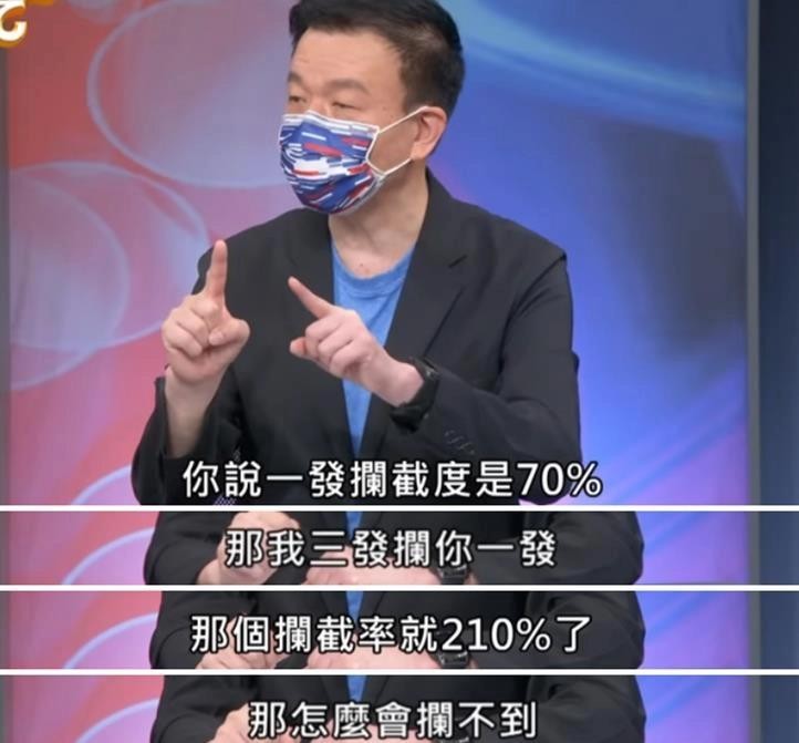 于北辰“導彈攔截率”言論引發爭議 (電視節目截圖) 1968年出生的于北辰是台軍退役陸軍少將,現任桃園市議員。他最出名的“經典理論”就是“導彈攔截率”。2022年他在一檔政論節目中稱,台灣的“天弓”導彈一枚攔截率為70%,3枚齊發攔截率可達210%。他還曾污衊“大陸城鎮都是土房子”,也因此得到“土房哥”的外號。(完) 【編輯:施鑫岳】