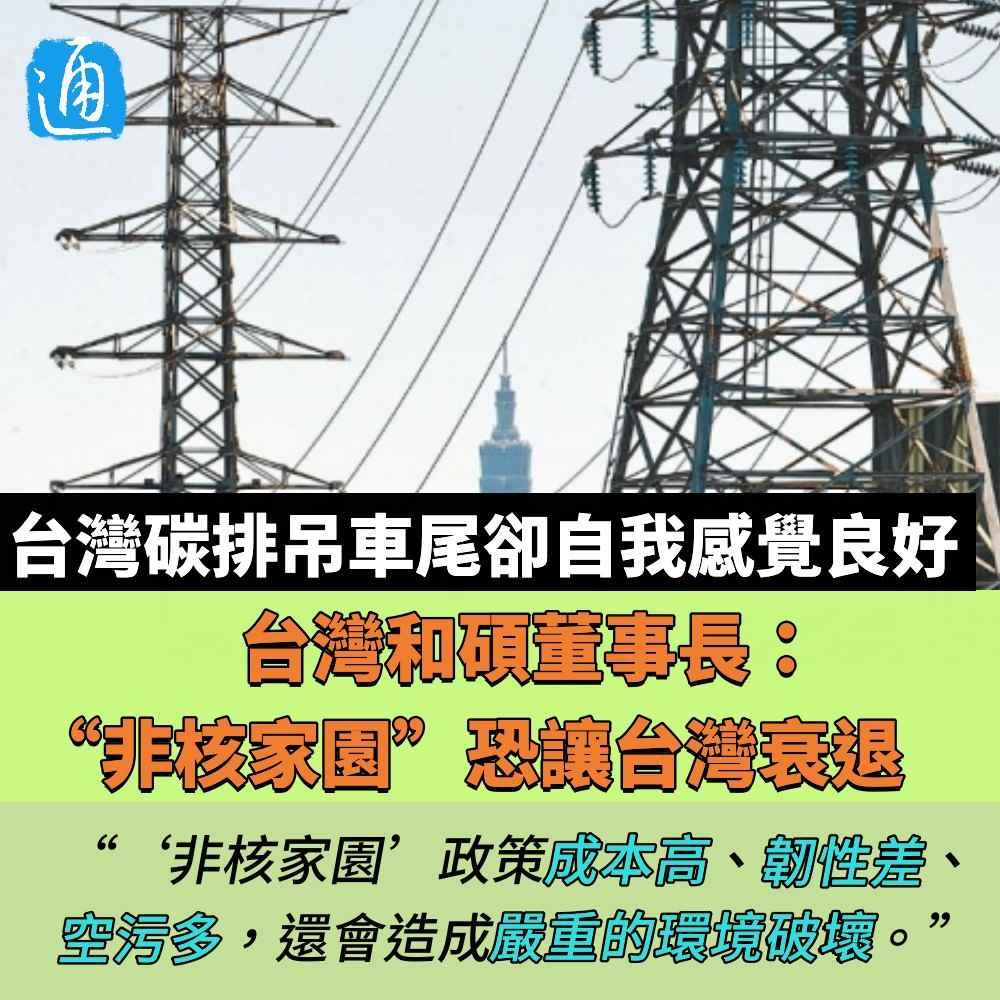 (香港新聞網製圖) 童子賢6月26日出席論壇活動,對於台灣能源政策,他表示,綠能有間歇性發電缺點,應與核能搭配,各佔台灣發電比例30%,讓不排碳發電合計達到60%,剩下40%採用火力發電,這是台灣能源的黃金比例,可以達到國際水準。 童子賢還指出,2023年時任台灣環境部門負責人參加聯合國氣候峰會COP28,向國際社會宣揚台灣減碳成果,結果大會隔天公佈全球排名,台灣排名倒數第七,比前屆還退步了四名,顯示台灣排碳率一直居高不下。“明明就是吊車尾,卻說自己好棒棒”,童子賢形容這是“台灣集體處在夢遊狀態”。 童子賢稱,若比較馬英九當局和蔡英文當局的綠能成績,馬英九卸任時綠色發電佔比仍高,但如今佔比不進反退,直言台灣能源政策不能改變的原因,無非是原來的“非核家園”口號卡住了。 童子賢呼籲調整台灣能源政策一事,在島內引發熱議。網友紛紛表示“吃了誠實豆沙包”,有人則稱“是民進黨跟死忠在夢遊”、“醒的人很多好嗎?是裝睡的叫不醒好嗎?” 台灣《聯合報》27日發表評論稱,台灣並沒有集體處在夢遊狀態。只要看2018年“以核養綠”公投結果,就知道台灣多數民眾其實是清醒的。但民進黨卻持續用謊言和夢話大力催眠造夢,要強迫台灣民眾進入集體夢遊狀態。 民進黨主張要在2025年實現“非核家園”,且再生能源發電佔比要達20%,賴清德上任後延續施政。但該政策自推出以來,全台就陷入供電危機,跳電、缺電、高電價、空氣污染讓民眾苦不堪言。 國民黨“立委”楊瓊瓔肯定童子賢說出許多官員的真心話。她說,民進黨以“非核家園”為能源政策目標,執政至今超過8年,現在結果是火力發電超過8成,台灣減碳速度世界倒數。 楊瓊瓔強調,能源政策應以數據討論,而非淪為口號和意識形態之爭。童子賢的說法,證明許多民意和產業界對核能和穩定供電的期待。不管是核電延役或是核能在發電配比中提高,民進黨當局都應該考慮,並且盡速停止以及檢討“非核家園”政策。 值得一提的是,童子賢曾是賴清德屬意的“閣揆”人選之一,日前更接下台灣當局領導人辦公室“氣候變遷對策委員會”副召集人的職位,此次大談核能,引發外界關注民進黨當局的能源政策是否鬆動。 對此,台灣當局領導人辦公室回應指,並沒有授意童子賢談核能的事,尊重能源議題多元意見。童子賢亦澄清“是獨立自主意見”。(完) 【編輯:石欢欢】
