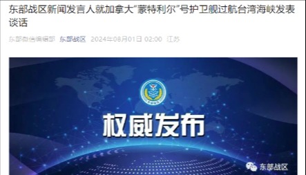 香港新聞網8月1日電 據東部戰區微信公眾號消息,東部戰區新聞發言人李熹海軍大校表示,7月31日,加拿大“蒙特利爾”號護衛艦過航台灣海峽並公開炒作。中國人民解放軍東部戰區組織海空兵力全程跟監警戒,依法依規處置。加方行為滋擾攪局,破壞台海和平穩定。戰區部隊時刻保持高度戒備,隨時應對一切威脅挑釁。