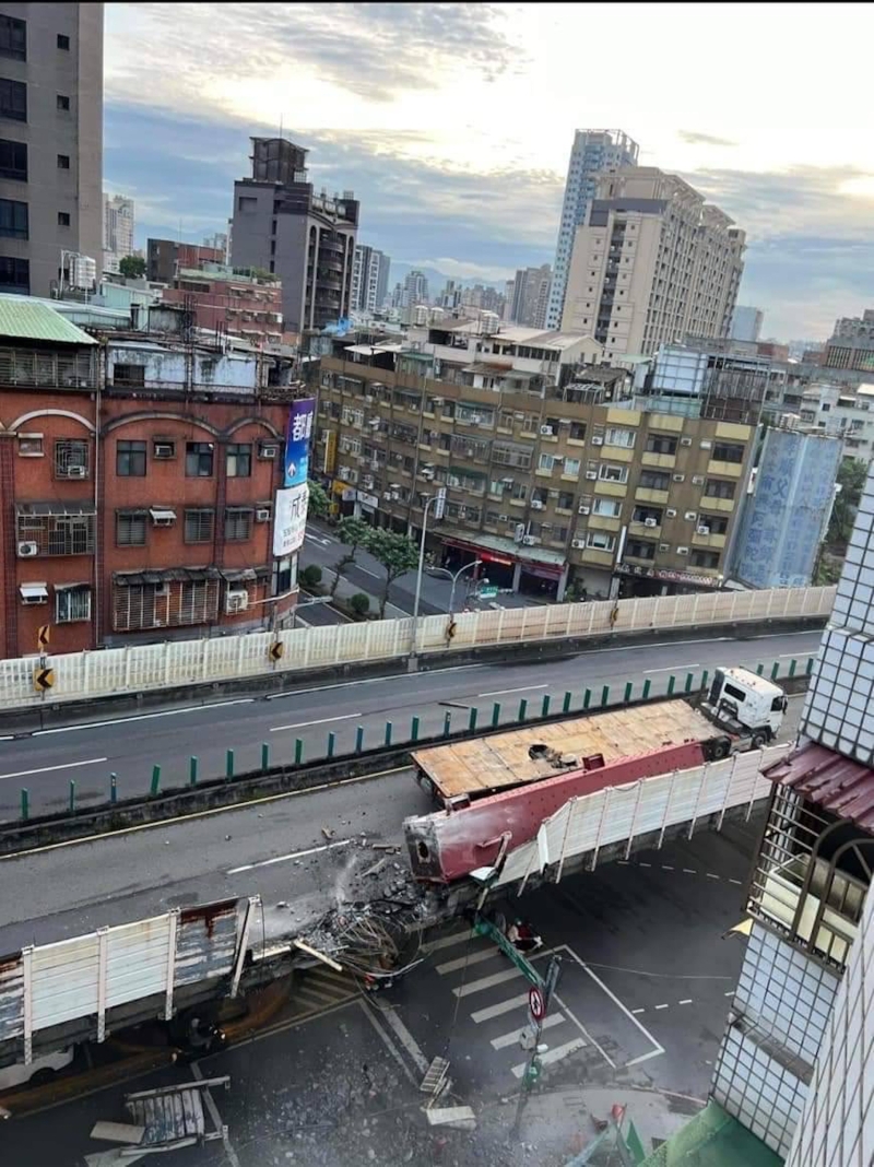 ● 台1線高架道路遭聯結車鋼梁砸毀 台1線中山高架道路20日清晨發生聯結車載送鋼梁翻覆事故,鋼柱突然滑落並砸破護欄,造成混凝土塊等掉落橋下,砸損下方車輛,所幸無人受傷。經評估,外側車道部分橋面板及護欄損壞,橋梁主體結構沒有受損,初估整體修復時間約需2個月。