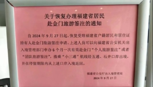 福建恢復居民赴馬祖旅遊簽注,台陸委會回應分享到: