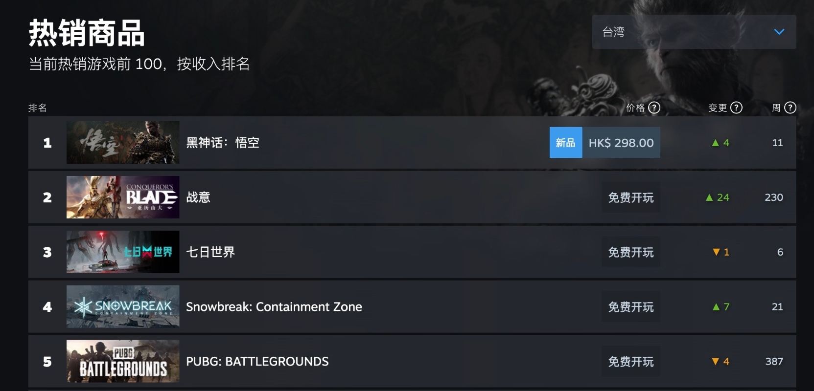 (圖源:STEAM) 據了解,自遊戲上線以來,《黑神話:悟空》在台灣地區的銷量已經攀升至第一。台灣時評員苑舉正稱讚,“文化能夠穿透歷史的塵埃,貫穿兩岸的隔閡。”賴岳謙也說,該遊戲取材於中國的元素,多年磨一劍,這一劍磨成功了,“我覺得他會激起更多大陸的這些年輕人,勇於冒險,勇於去開發‘獨角獸’的公司。” 擊碎枷鎖,歷經九九八十一難,方能修成正果,《黑神話》在全球出圈的征途中面對的是漫長的進階之路,這款遊戲或許會成為中國遊戲史上里程碑式的作品。 (完) 【編輯:念方野】