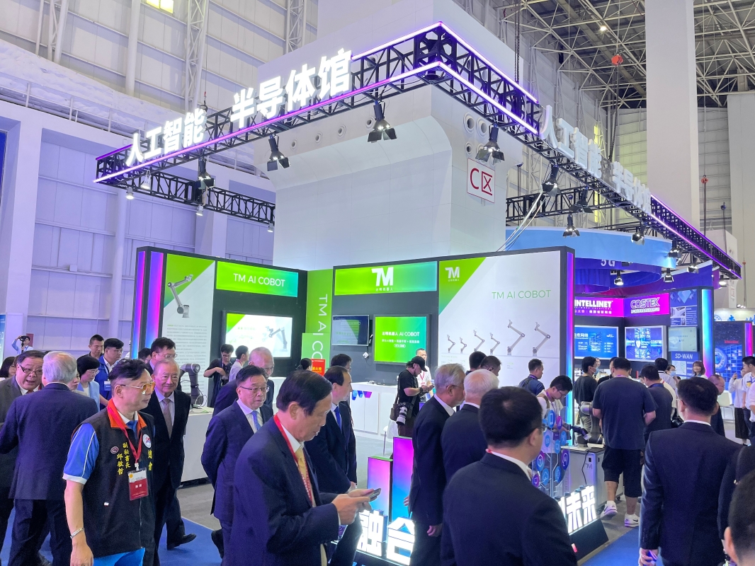 香港中通社記者 鄭竣凱攝 本屆展會有超600家企業參展,展位超2000個,設有人工智能與半導體館、“台青築夢進莞來”館等特色展館。台灣22個縣市展商組成台灣伴手禮專區,大陸25個省(市)設立形象館。