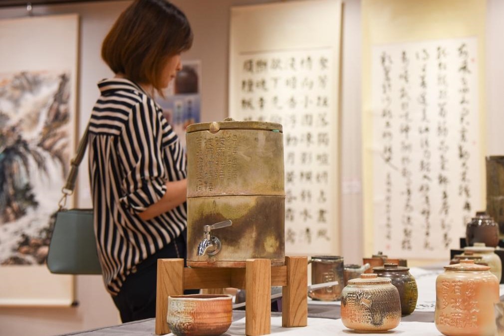 資料圖為第七屆海峽兩岸藝術名家邀請展上,觀眾在參觀展品。圖源:新華社 展覽中,由20位兩岸書畫名家共同創作的巨幅畫作《兩岸同根圖》引人注目。這幅水墨寫意畫將山東泰山與台灣玉山巧妙融合,兩座名山相互輝映。主辦方表示,這幅畫展現了兩岸山水的壯麗與秀美,也傳遞出兩岸同胞血濃於水的親情。這不僅是簡單的創作,更是兩岸藝術家攜手為文化藝術交流貢獻力量的堅定決心,用藝術語言跨越海峽阻隔,共同抒發對“兩岸同根生”的深刻認同和對未來的美好期許。 本次展覽共展出兩岸200多位名家的作品約300件,形式涵蓋篆隸行草等書法作品,水墨畫、水彩畫等繪畫作品,以及不同造型的陶瓷作品,內容多以“兩岸”“山川”“龍”為主題。 展覽主辦機構表示,海峽兩岸藝術名家邀請展已成功舉辦七屆,並在兩岸文藝界形成較大影響,成為兩岸書畫界一年一度的文化盛事。參與展覽的兩岸書法名家以筆為媒,共同書寫了中華民族的深厚底蘊與美好願景。 台灣知名畫家、港澳台美術家協會台灣主席李沃源表示,本次展覽不僅是一次藝術的交流碰撞,更是兩岸文化同根同源的生動體現。兩岸應共同傳承弘揚中華優秀傳統文化,以兩岸一家為主軸,促進和平統一,共同致力於中華民族的偉大復興。 展覽將持續至10月6日,期間還將舉行12場筆會、講座等文化活動。(完) 【編輯:張依珊】