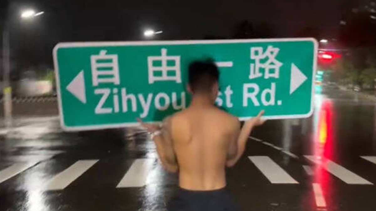 高雄男颱風天撿“自由一路”路牌扛肩炫耀 遭罰兩張罰單分享到: