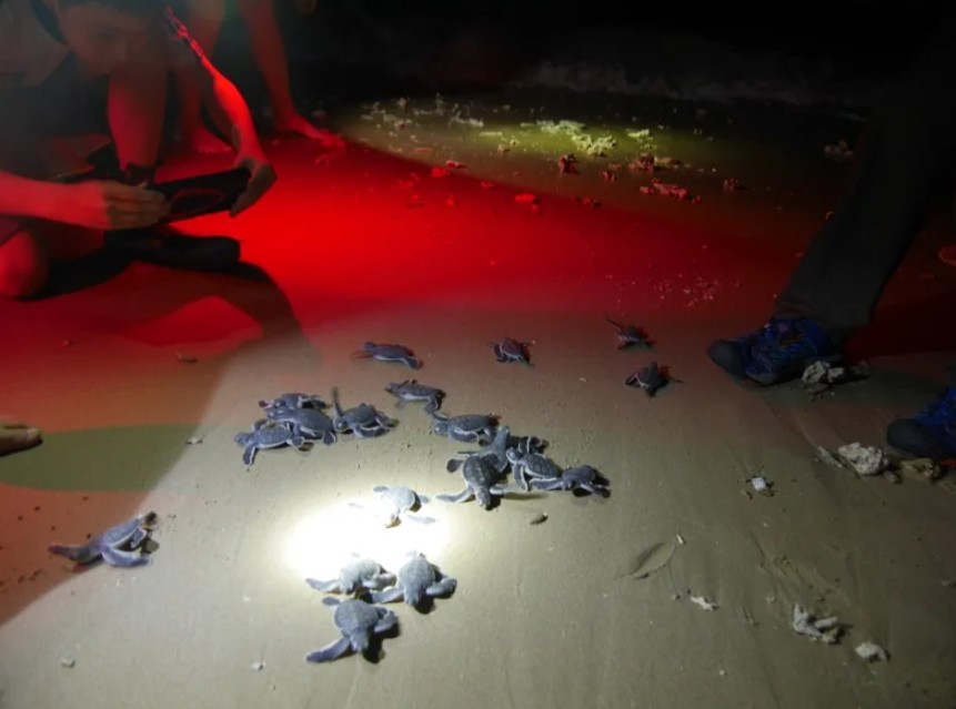 墾丁公園管理處的20名人員、志工及巡守隊經過2小時努力,最終協助所有小海龜順利入海。(圖源:墾丁公園管理處) 在孵化前幾天,墾管處與生態志工開始巡查。16日,巡查員通報小海龜已孵化,但沙灘上的雜物使得部分小海龜在入海時受困。墾丁公園管理處與恆春鎮海岸永續發展協會的團隊及獸醫,共同展開救援行動。 根據墾丁公園管理處的統計,78顆海龜卵中有63顆孵化,31隻小海龜自行入海,而32隻則需救援後才能順利下海。 公園管理處強調,墾丁公園的沙灘面臨遊憩活動、人為干擾、光害及氣候變遷等挑戰,海龜的產卵和孵化過程極為艱難。未來,將透過環境教育和保育宣導,呼籲民眾共同守護墾丁海洋生態。 同時,墾管處提醒民眾遇見海龜時,應遵守“五不原則”:不觸碰、不打擾、不餵食、不追逐、不傷害。如發現擱淺或需救援的海洋保育類野生動物,務必通報相關單位。(完) 【編輯:黃璇】