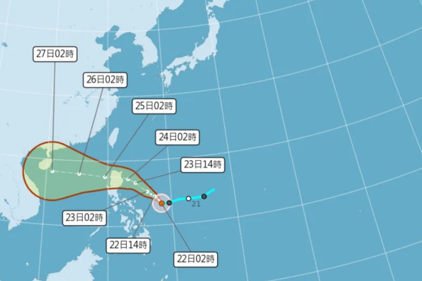 原位於菲律賓東方海面的熱帶性低氣壓,今天凌晨2時發展為今年第20號輕度颱風潭美。(圖取自台灣氣象署網站) 目前,位於菲律賓東方海域的熱帶性低氣壓已於今日凌晨2時發展為今年第20號輕度颱風潭美,中心位於鵝鑾鼻東南方約1270公里的海面上,預計將向西北移動,並可能通過呂宋島,隨後進入南海。台灣氣象署提醒,需特別留意該颱風對本周後期台灣降雨的影響。 隨著東北風增強,今日上午桃園至雲林沿海及恆春半島、蘭嶼、綠島、澎湖等地將出現強陣風。隨著午後降雨的增強,基隆北海岸及東北部山區可能會出現局部豪雨。全台白天高溫在28至33度之間,低溫約23至25度。 氣象署指出,明天北部及東北部的氣溫將下降至22至26度,並預測基隆北海岸和東北部可能會有局部大雨,特別是在東北部山區。周四(24日)起,颱風外圍環流將開始影響台灣,基隆北海岸、大台北及東半部地區的降雨機率將增加,宜蘭及花蓮山區可能會出現豪雨。(完) 【編輯:黃璇】