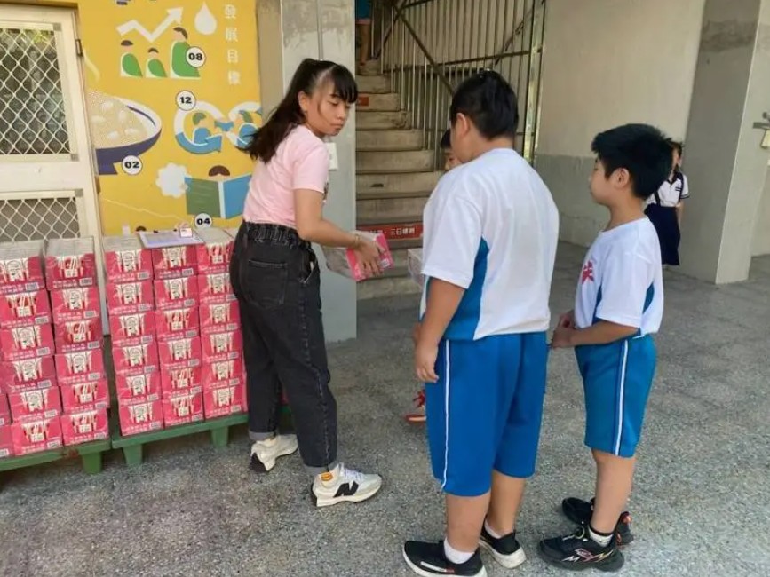 彰化縣已有學校收到“班班有鮮乳”的保久乳,各班派學生整箱抱回教室分送。(圖源:聯合報,學校提供)
