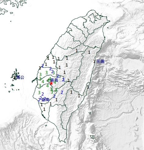 圖片來源:中時新聞 14時19分,嘉義縣中埔鄉發生4.8級地震,地震深度僅5.6公里,彰化縣、雲林縣、嘉義市、嘉義縣及台南市響起警報。 14時21分,中埔鄉發生3.3級地震,地震深度8.7公里,台南市、嘉義市均有明顯震感。 14時28分發生第3起有感地震,震央同樣在中埔鄉,震度為4.5級,地震深度5.8公里,台南市、嘉義市、雲林縣、高雄市等地有震感。 14時56分,中埔鄉發生第4起有感地震,規模達到4.9,地震深度5公里,南投縣、彰化縣、雲林縣、嘉義市、嘉義縣、台南市響起警報,全台11縣市有感。 【編輯:鄭竣凱】