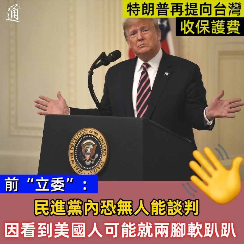 特朗普再提向台收“保護費” 前“立委”:民進黨恐無人能談判香港新聞網10月28日電 美國共和黨總統候選人特朗普近日接受全美最熱門播客節目《喬·羅根體驗》採訪時再次提及,台灣若需要美國保護,就應該支付“保護費”,引發台灣熱議。台灣前“立委”沈富雄認為,民進黨團隊裡沒有一個人足夠當台灣的代表,去跟未來可能的美國總統談判,因為看到美國人可能兩腳就軟趴趴的; 中國國民黨“立委”李彥秀指出,若台灣的防務支出真如特朗普早前所揚言的提高到GDP的10%,“那整個台灣都不要運作了”。認為未來面對可能的特朗普模式衝擊,台當局及企業界應做好因應。
