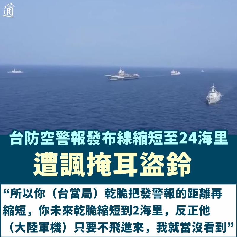 台防空警報發布線縮短至24海里,遭諷掩耳盜鈴分享到: