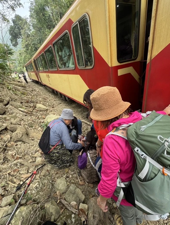 阿里山森林鐵路14日有登山客闖軌道區拍照,閃避不及遭小火車撞倒,花蓮縣衛生局長朱家祥恰好在車上協助包紮傷口。(網絡圖片)
