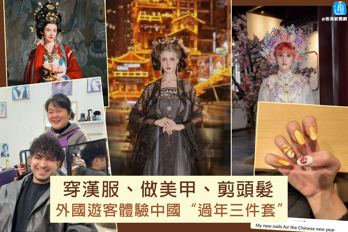 香港新聞網1月27日電 外國遊客來華旅遊熱度持續,適逢蛇年新春在即,不少人紛紛入鄉隨俗,沉浸式感受中國新年的歡慶氛圍。台前外事官員介文汲對此評論稱,美國網友打破“信息繭房”後,驚喜發現中國文化的獨特魅力。 新年將至,外國來華遊客除了觀看舞龍、舞獅、吹糖人、猜燈謎等傳統年俗表演外,不少人還曬出自己在中國的“過年三件套”——穿漢服、做美甲、剪頭髮。 在西安大唐不夜城,到處可見金髮碧眼的外國遊客身著漢服、手提花燈,化中式妝容,沉浸式體驗千年古都的風情。在社交媒體小紅書上,也有不少外國網友發布自己身穿漢服的寫真。 美國女生“Amberly” 早前在小紅書發布在山西大同拍攝的唐裝漢服寫真,並表示“很高興在大同體驗如此美麗的文化”;德國女生“Lydia呂迪雅”身穿一身淡雅漢服,頭戴簪花,手執團扇,感受江南的詩意與溫婉;意大利女孩“卡麗娜”則在重慶洪崖洞前身穿一襲華美的黑紗漢服,感歎自己仿佛一瞬間穿越到千年前的繁華盛世。 除了漢服之外,也有不少愛美的外國女生在中國體驗美甲。早前,就有不少韓國女生分享在上海旅遊時花99元人民幣做的美甲,並發帖推薦說“去上海不做美甲真的是傻瓜”。 當然,新年前剪個“靚頭”也是外國遊客來華不能錯過的體驗。早前,有來自土耳其的遊客慕名找到在網絡上爆紅的湖南理髮師曉華,在曉華一番熟練操作下,土耳其小夥實現“顏值逆襲”。