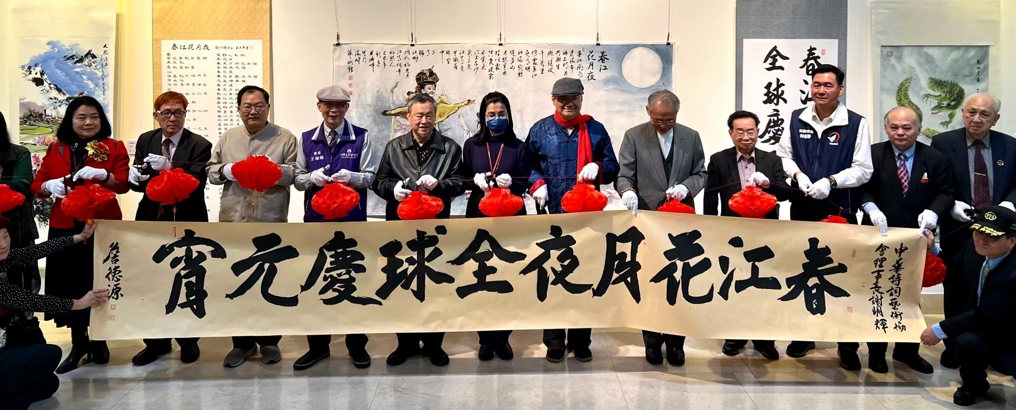 藝術家們共同現場揮毫,寫下“春江花月夜-全球慶元宵”的書法作品。 (謝明輝提供) 此次展覽涵蓋來自大陸、台灣、香港及世界各地的藝術家作品。這些作品風格各異、題材豐富,或展現中國山河的壯麗,或抒發對美好生活的嚮往,或傳遞對中華文化的熱愛與傳承。在接下來的展期裡,這場藝術盛宴將吸引更多民眾前來參觀欣賞,進一步推動中華文化的傳承與發展,促進世界華人文化的交流與繁榮。(完) 【編輯:施鑫岳】