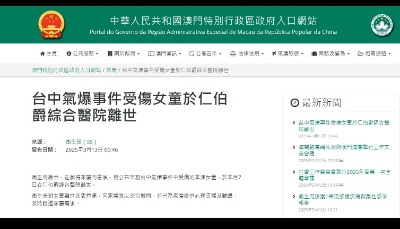香港中通社圖片 新光三越台中中港店13日發生氣爆,造成4人死亡、31人受傷。於氣爆發生原因,消防局指出,初步了解現場沒有易爆炸物,沒有粉塵爆炸,初步研判是瓦斯氣爆。 ● 台“中選會” 至13日累計收51案罷免 全台掀起罷免潮,罷免中國國民黨立委陳超明、邱鎮軍與罷免民進黨立委黃捷、許智傑的團體13日都赴“中選會”送交提議書。“中選會”說,截至13日共收到54件罷免案送件,其中51案為立委、1案為市縣長罷免案、2案為縣議員罷免案。 ● 台軍方:解放軍11機艦台海周邊活動 台灣當局防務部門14日稱,自昨天(13日)上午6時至今天上午6時,共有解放軍軍機5架次,其中1架次逾越“海峽中線”進入西南空域,同軍艦6艘在台海周邊活動。 ● 中華台北隊亞冬會獲1銅 女冰球隊員任閉幕式旗手 2025亞洲冬季運動會14日晚將舉辦閉幕典禮,中華台北代表團將由女子冰球代表隊守門員徐子庭擔任旗手。中華台北選手在亞冬運賽程已於13日全數結束,靠著陳映竹在女子競速滑冰100公尺摘銅,奪得1990年首度參賽以來在亞冬會的首面獎牌。(香港新聞網14日綜合) 【編輯:鄭竣凱】