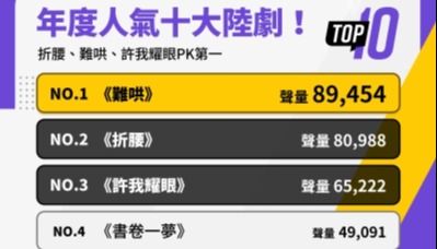 台灣“陸劇熱”延燒!台網盤點評出十大小說改編人氣陸劇香港新聞網3月10日電(編輯 丘志彬)又一部陸劇在台灣爆火!由小說改編成電視劇的《難哄》成為當下台灣島內最熱門的電視劇之一,“許多人都追得欲罷不能”。台灣“網絡溫度計 DailyView”近日關注到這個現象,根據島內人氣對近一年由小說改編的大陸電視劇進行了盤點。