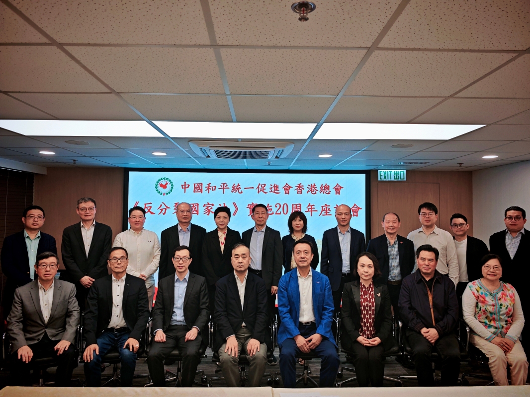 全國政協常委、中國和平統一促進會香港總會會長姚志勝(前排右4) 姚志勝指出,《反分裂國家法》明確規定,“‘台獨’分裂勢力以任何名義、任何方式造成台灣從中國分裂出去的事實,或者發生將會導致台灣從中國分裂出去的重大事變,或者和平統一的可能性完全喪失,國家得採取非和平方式及其他必要措施,捍衛國家主權和領土完整。”這對“台獨”分子及外部勢力形成了強大威懾,既粉碎了“台獨”分子大搞“法理台獨”的圖謀,也有力抑制了外部勢力干涉台灣事務、干預中國內政的氣焰。 姚志勝表示,國家高度重視運用法治方式、法律手段懲治和遏制“台獨”,推動國家統一成果有目共睹。中國大陸總結《反分裂國家法》制訂和實施經驗,對進一步做好新時代對台工作進行有益探索,對推進國家統一大業具有重要指導意義。作為“一國兩制”率先垂範之地,香港可以更好配合國家統一的法治建設工作,增進國際社會對統一大業的理解和支持。(完) 【編輯:程敏璇】