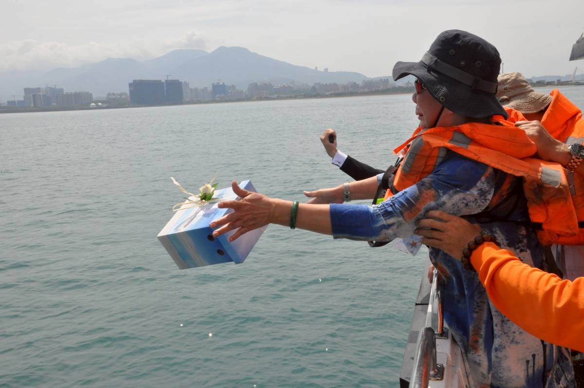 圖為台南環保葬園區。台南市政府圖片 由於台灣傳統喪葬習俗強調入土為安,土葬曾長期佔據台灣社會殯葬舊習的主導地位。然而,隨著墓地與活人爭地問題愈發棘手,以及社會觀念的逐步轉變,殯葬禮俗也在悄然發生變化。土葬逐漸被民眾摒棄,并於2017年被環保葬超越。 以2022年為例,台灣內政部門數據顯示,當年台灣逝者的殯葬儀式中,火葬有22.2萬件、環保葬1.89萬件、土葬僅0.57萬件。在殯葬類型方面,火葬自不必說,樹葬、花葬、海葬這三種最常見的環保葬方式也逐漸成為風尚(此外還有灑葬和植存)。 具體而言,樹葬與花葬均為不立碑、不記名的環保葬法。將骨灰研磨後裝入紙袋,埋葬於樹根或花圃之下,任其自然分解、回歸大地。樹葬寓意生命與自然的完美融合,花葬則象征著往生者化作滋養萬物的春泥。每個穴位在2至3年的養護期結束後,經過自然分解與土壤養護,可供後續下葬使用。選擇樹葬和花葬的人數最多,且近年來呈逐年上升趨勢。 海葬則是將亡者火化後的骨灰再次研磨,用可降解的棉紙袋盛裝,置於“安息盒”中。當船隻航行至特定海域,家屬進行告別祈福儀式後,將“安息盒”連同鮮花一同拋灑入海。為讓生者日後有憑吊之處,海葬結束後,家屬會得到一張小卡片,上面記錄著海葬時骨灰拋撒的經緯度,方便日後有需要時出海追思。