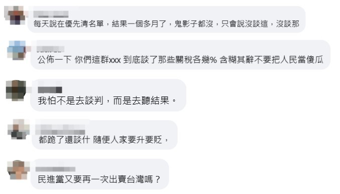 因此,台灣輿論對民進黨當局對美“跪得徹底”的談判不抱希望,“到底談了哪些關稅, 含糊其辭把人民當傻瓜”“每天說在優先清名單,結果一個多月了,鬼影子都沒”“我怕不是去談判,而是去聽結果”“民進黨又要再一次出賣台灣嗎”……