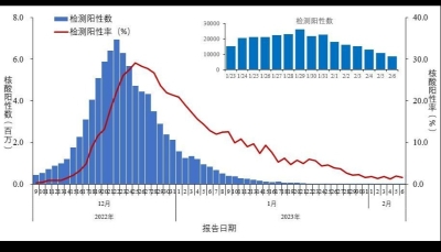 香港中通社5月20日電 台北消息:台灣當局“疾管署”20日通報,上周新冠門急、診就診人次較前一周急升近九成,推測與病毒變異株轉換有關,預計疫情6月中下旬達高峰,屆時單周就診可能達5.5萬至6.5萬人次。