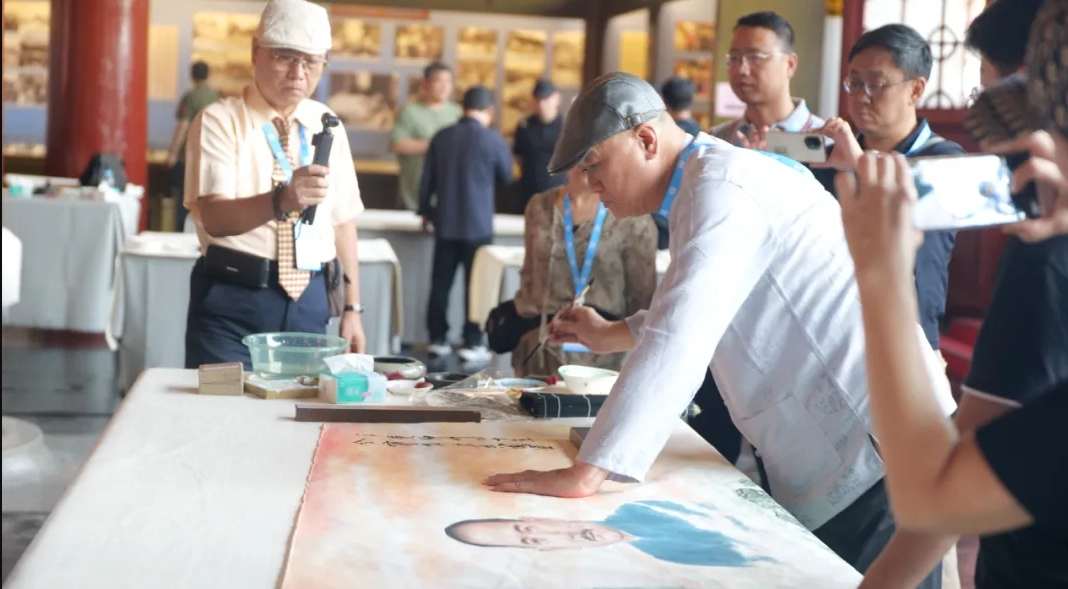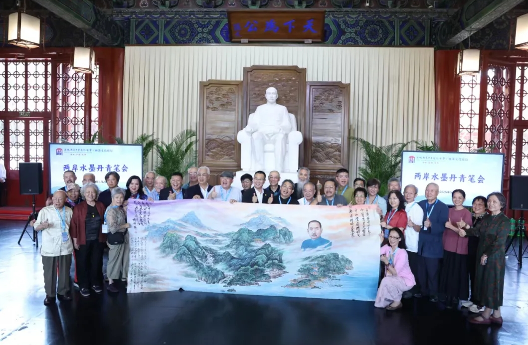 當天下午,北京中山公園中山堂內墨香盈袖、筆意綿長,以"同根翰墨,共繪中山"為主題的第二屆海峽兩岸中華文化峰會·四海文化論壇第二場水墨丹青筆會在此隆重舉行。來自海峽兩岸的30餘位書畫家齊聚一堂,以書畫為媒,共叙中華文化根脈,共祈兩岸和平統一。 北京市台辦副主任劉先傳表示:"中國共產黨人是孫中山先生開創的革命事業的忠實繼承者,始終把自己為之奮鬥的事業視為辛亥革命的繼續和發展。今天兩岸藝術家在此揮毫,既是對中華文化的傳承,也是對中山先生'振興中華'精神的致敬,更是對兩岸同胞共同歷史使命的銘記。" 四海孔子書院院長馮哲談及此次筆會的緣起,要追溯到一位深受孫中山先生精神感召的台灣同胞——中華詩詞藝術協會理事長謝明輝先生。他在閱讀了關於中山堂及其歷史意義的文章後,深受鼓舞。特別是得知自己早年在中山堂前即興創作的詩歌被中山先生後人記載,那份對兩岸統一和親人團圓的渴望再次被喚醒。 受此靈感激發,謝明輝萌生了在中山堂舉辦兩岸水墨丹青筆會的想法,希望通過書畫藝術這一橋梁,連接兩岸同胞的心靈,共續中華文化薪火,共祈兩岸和平統一。經過兩岸相關單位精心籌備,這場以“同根翰墨,共繪中山”為主題的水墨丹青筆會得以成功舉辦。 台灣中華詩詞藝術協會理事長謝明輝在現場又吟誦了新作《中山堂憶》:"再見中山三十年,無限回憶在堂前。兩岸春寒今更勝,統一再祈孫中山。"詩句中飽含對兩岸團圓的深切期盼,引發全場共鳴。