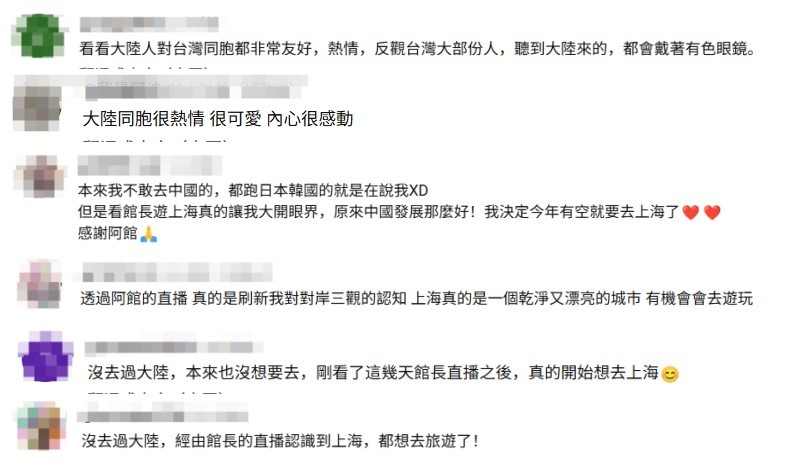 6月11日,台灣網紅“館長”陳之漢在上海外灘。(圖源:“館長”直播截圖) 對此,台灣《聯合報》今天(12日)發表的評論指出,大陸釋出“歡迎台灣同胞多來大陸走一走,樂見大陸民眾到祖國寶島看一看”的善意,而民進黨當局則“刁難以對”,更以所謂“統戰”之名來“鎖台自閉”,不過就是擔心民進黨多年用於詆毀大陸形象的謊言被揭穿。 “台灣國際戰略學會”理事長王崑義集今天亦撰文批評,民進黨當局煽動“反中”、“抗中”的情緒,以恐懼阻撓兩岸交流,把兩岸關係搞得風聲鶴唳,最終只會把自己拖進死胡同,因為“台灣要好,兩岸關係不能壞”。 何況,民進黨當局再渲染“綠色恐怖”也難擋期望兩岸交流的民意。 《聯合報》稱,在當今這個網絡時代,民進黨當局以政策鎖台,凍結兩岸民間交流,但很難禁絕網絡傳播,台灣人仍能通過“館長”的直播看到真實的大陸,對大陸印象改觀。 截至發稿,“館長”大陸行在YouTube上的直播累計觀看次數已超700萬。不少台灣網友跟著“館長”的直播鏡頭“雲旅行”,感嘆大陸與綠營宣傳的完全不同,不僅大陸“厠所沒有門” “高鐵沒有靠背”“民眾吃不起茶葉蛋”等謊言不攻自破,更看到大陸建設先進和人民友善。 許多觀看直播的台灣網友表示,被大陸同胞對台灣人的善意和溫暖而感動,還稱有機會也要到大陸游玩。