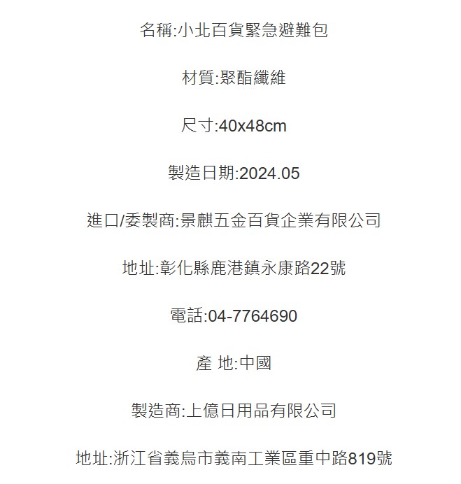 香港新聞網製圖 “美國在台協會”近日突然呼籲台灣民眾隨時準備好避難包,以應對突發災害或緊急情況。“台獨”基地“黑熊學院”順勢推出新版防災必備盒,售價一盒1380元;綠委黃捷其後也蹭熱度,17日在社交平台臉書發文稱,“最近大家都在討論緊急避難包,你的避難包準備好了嗎?平時備而不用,但建立起防災意識,有備無患!” 她發文稱,其實台灣小北百貨5年前,就跟台設計研究院、東海醫院設計工作室、“內政部”消防署和台灣防災產業協會合作,並配合台當局經濟部門推廣防災計劃,是社區裡的防災好朋友。 黃捷稱,緊急避難包建議為以下幾類:防災食物類(水、防災食品、乾糧);保暖衣物(暖暖包、衣服、小被等);個人醫藥用品(急救箱、藥品等);重要物品(少許現金、證件影本);其他工具類(如手電筒、哨子、收音機、電池、耐磨手套和瑞士刀等等)。 帖文一出,有青鳥支持者讚其“貼心”。但尷尬的是,該款防災包很快被發現,其實是大陸製造,這顯然不符合把“抗中保台”掛嘴邊的綠營的所謂台灣價值! 翻查小北百貨官網,可見防災包雖是由彰化的景麒五金百貨企業有限公司委製,但製造商卻是浙江義務的上億日用品有限公司,且售價僅299元,相比“黑熊學院”的防災包,實惠不少。
