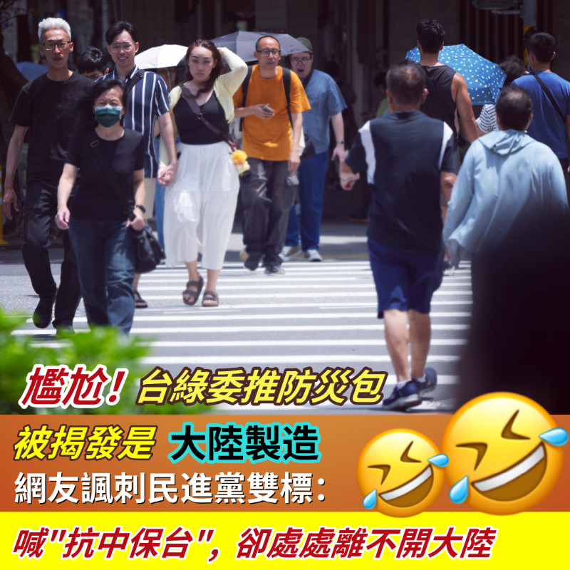 尷尬!台綠委推防災包,被揭發是大陸製造香港新聞網6月18日電 “美國在台協會”(AIT)近日呼籲台灣民眾隨時準備好避難包,以應對突發災害或緊急情況,引發關注及熱議。民進黨“立委”黃捷昨日(17日)也在社交平台秀出台灣一間百貨售賣的防災包,一個只要299元(新台幣,下同),可尷尬的是,該款防災包被發現是大陸製造,明顯不符合把“抗中保台”掛嘴邊的綠營的所謂台灣價值。 島內網友也諷刺民進黨雙標,喊“抗中保台”的口號,卻處處離不開大陸。