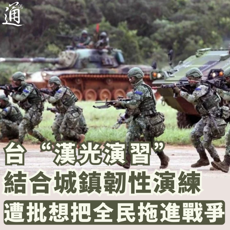 台“漢光演習”結合城鎮韌性演練 遭批想把全民拖進戰爭香港新聞網7月11日電 台軍7月9日開始“漢光41號演習”,此次演習時間延長一倍、參演人數創歷年之最,並首次將所謂“大陸2027攻台”作為想定,且與“城鎮防衛韌性演習”相結合,還新增“灰色地帶襲擾”、“認知作戰”等演練內容。對此,台灣輿論批評,演習暴露民進黨當局自身完全不了解現代戰爭狀態,更企圖將全民拖進戰爭。