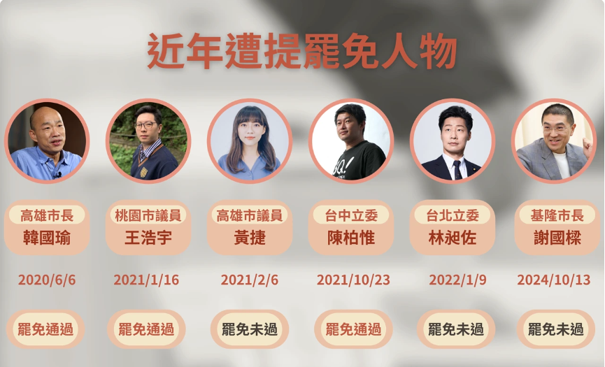 台灣近年遭發起罷免的政治人物及結果 有分析指出,投票率是決定罷免結果的關鍵。2020年、2024年台立法機構選舉投票率分別都超過了七成。近5年來,幾次罷免選舉投票率則為四至五成。罷免投票率通常低於選舉投票率,會參與罷免投票的選民,需要更強的動力。(完) 【編輯:施鑫岳】