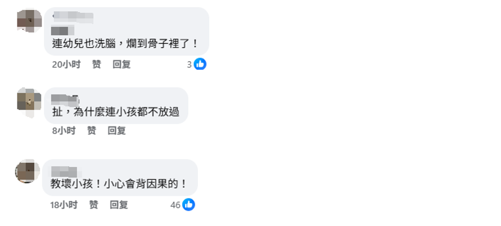 網友評論 “教改不就是如此嗎?”有網友指出,民進黨早已將魔爪伸向學校,多年來通過推動教改洗腦年輕人,現在又試圖洗腦幼兒,可謂“爛到骨子裡了”。