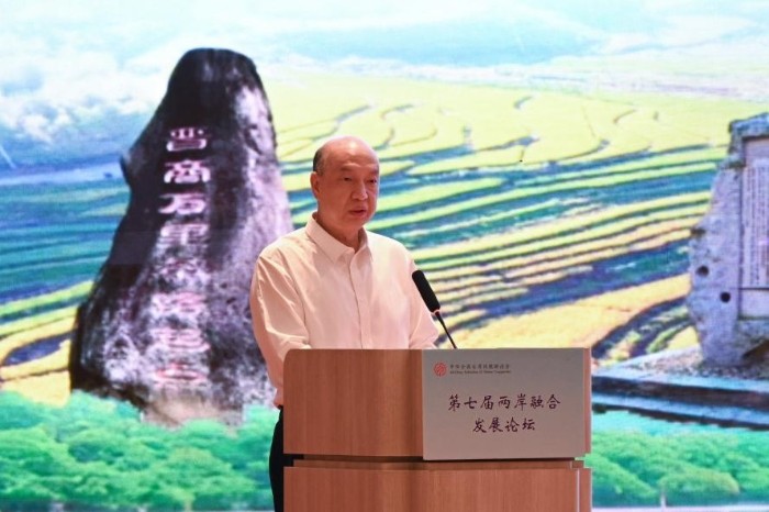 中華全國台灣同胞聯誼會會長鄭建閩在開幕式上致辭。(主辦方圖片) 福建省副省長江爾雄致辭表示,2023年以來,兩岸融合發展論壇連續三屆落地福建,已成為展示福建先行先試成果,推動兩岸產業協同和政策創新的重要平台。真誠希望各位專家學者聚焦論壇主題,加強交流互鑒、碰撞智慧火花,為當前台海形勢下推動兩岸融合發展走深走實建真言、獻良策,持續推動兩岸融合發展向更寬領域、更深層次、更高水平邁進。 新黨副主席兼秘書長林易升致辭表示,自己在大陸創業生活近30年,見證了大陸不斷走向繁榮富強,也見證了兩岸融合發展不斷深化。新黨堅持一個中國原則,旗幟鮮明主張兩岸和平統一。廣大台胞台企對深化融合、共享機遇充滿期待,尤其希望加強青年互動,共同應對產業升級、綠色轉型挑戰,實現互利共贏。 這屆論壇為期2天,兩岸學者將圍繞4個子議題展開研討,主要包括:貫徹落實習近平總書記關於對台工作重要論述、新時代黨解決台灣問題的總體方略與深化兩岸融合發展;兩岸關係新形勢與兩岸融合發展問題研究;關於完善促進兩岸經濟文化交流合作制度和政策的建議;福建探索海峽兩岸融合發展新路、建設兩岸融合發展示範區的經驗與啟示等。(完) 【編輯:黃璇】