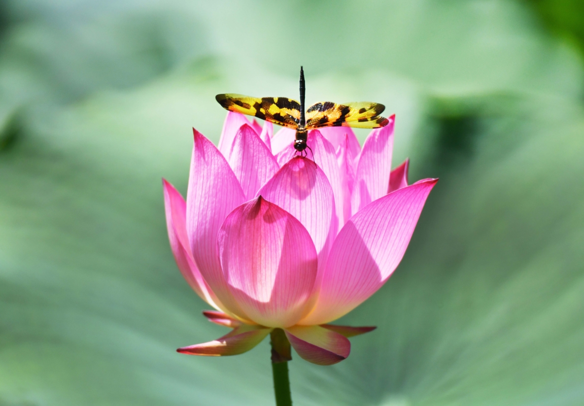 荷葉鋪展,一池清香,彩裳蜻蜓跳舞,閃閃發光,照亮荷花,定格成為永恆。