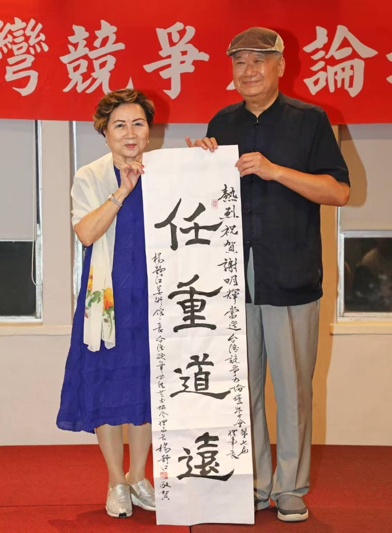 謝明輝高票當選台灣競爭力論壇理事長 (謝明輝提供) 新任理事長 謝明輝資歷豐富 謝明輝理事長具備“學術、實務、藝文”三棲背景。學術上擁有台大政治所碩士與中央警大行政系學士,並長期研究兩岸政治與公共政策;實務上歷任“國會代表”、海迅部門立法機構聯絡組長、警界要職;藝文方面則著有《詩韻中華》等詩集,並身兼中華詩詞藝術協會理事長。他同時是多項兩岸及台灣競爭力論述專著的作者,曾獲“中華文薈傑出貢獻獎”與“中國文學詩詞獎”等榮譽,現亦擔任多縣市政府顧問。 謝理事長在就職感言中指出,學會將秉持“謀共識、找出路”的精神,結合人文底蘊與學術研究,打造跨界平台,推動台灣競爭力與文化深度融合。 政商學界雲集 共同致賀 大會及晚宴場面盛大,出席嘉賓包括立法機構負責人韓國瑜(致送花籃)、中國國民黨秘書長黃健庭、台北市副市長李四川、前海基會董事長林中森、台退役上將季麟連,以及多位立委、市議員與智庫學者。 學界代表有中華經濟研究院副院長王健全、前台北教育大學校長莊淇銘、前台灣團結聯盟黨主席蘇進強等;企業與藝文界亦高度響應,燿華集團總裁張平沼獲聘總顧問,何鴻榮、張連興、湯永郎、慶啟本等企業領袖與藝術界名家到場祝賀。 藝文氣息襯托人文精神 多位書畫藝術家於晚宴中致贈墨寶與畫作,如“任重道遠”、“薪火相傳”等題字,呼應學會的使命與謝理事長的人文特色。謝明瑞教授亦贈送《春江花月夜》與《詩韻中華》詩集給與會貴賓,為典禮增添文采。